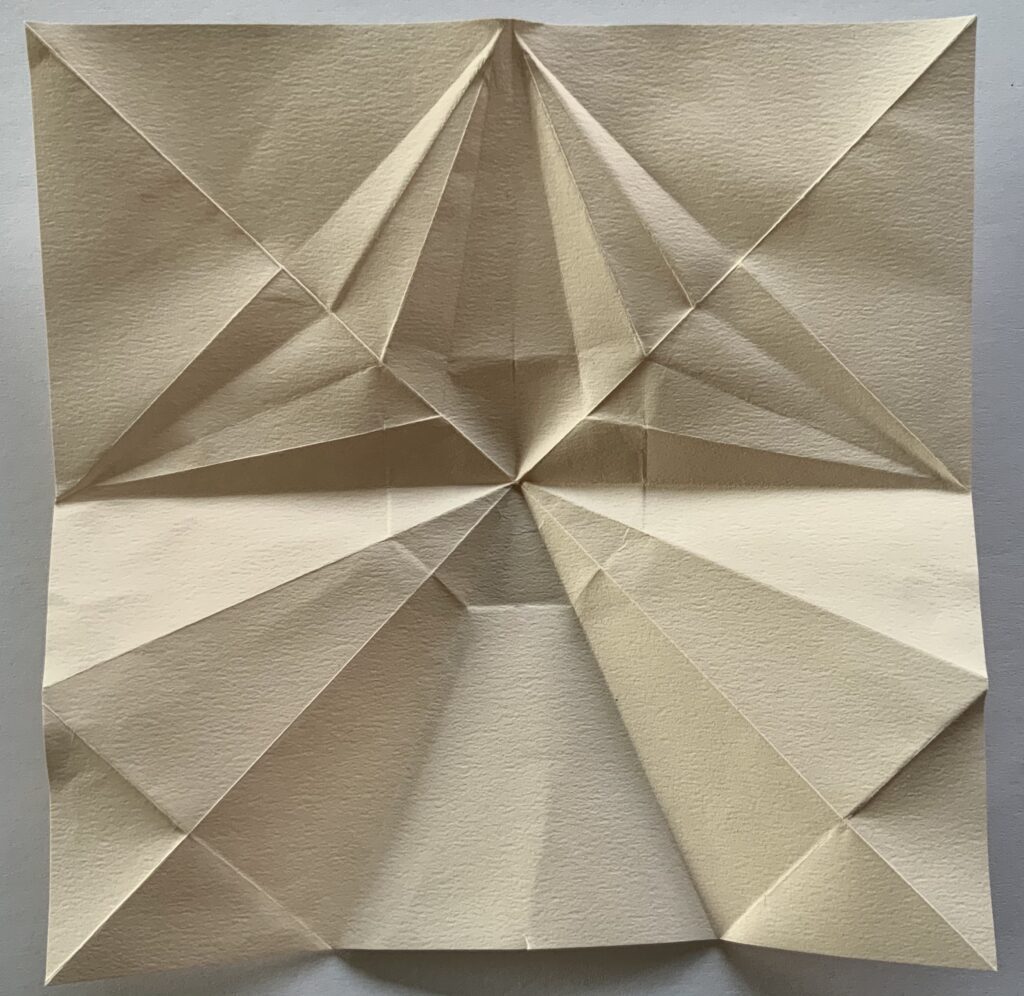 I englen er halslinjen strengt taget en markering og ikke en fold, og hvis man undgår den og undgår den overflødige linje fra foldeprocessen midt i ryggen, så har englen et foldemønster der kan foldes fladt.