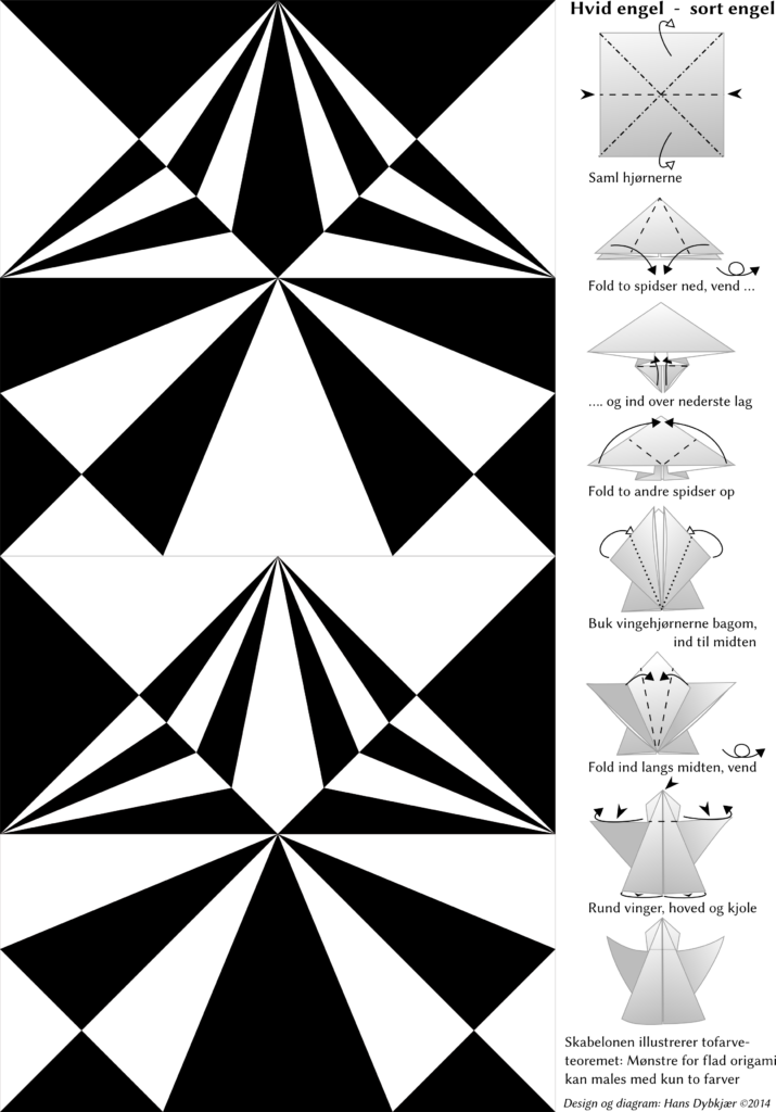Det ene mønster giver en engel der er sort foran og hvid bagpå, det andet mønster gør det omvendt.