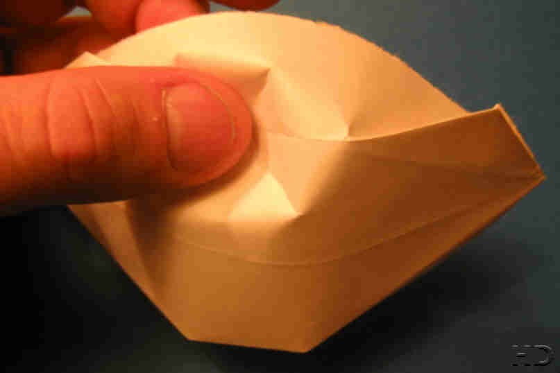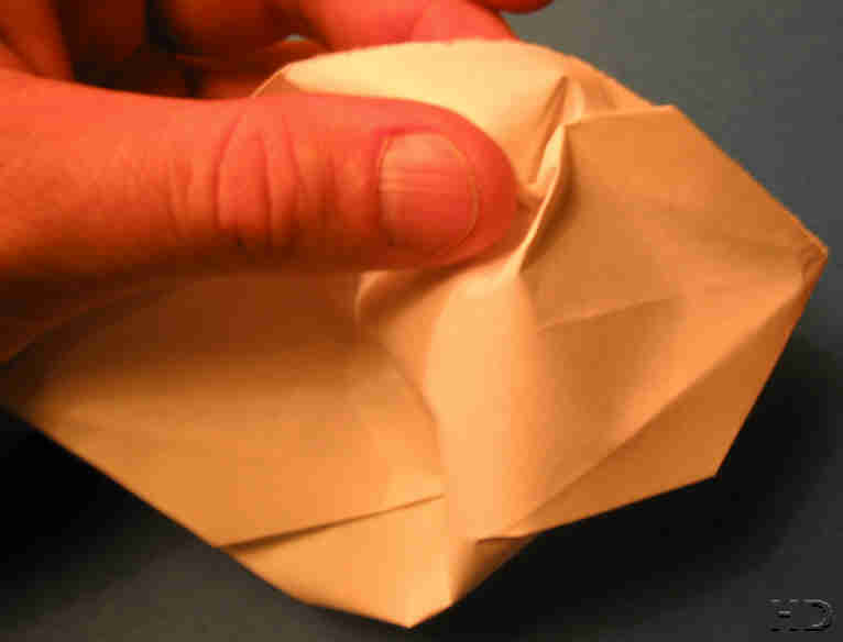 En traditionel foldning som jeg kender fra barndommen. Brug aflangt papir, som A4 eller smallere. Det aflange stykke man får til overs når man laver et kvadrat ud af A4 er perfekt. Man vender vrangen ud undervejs, og det kræver smidigt papir - kopipapir er udmærket.